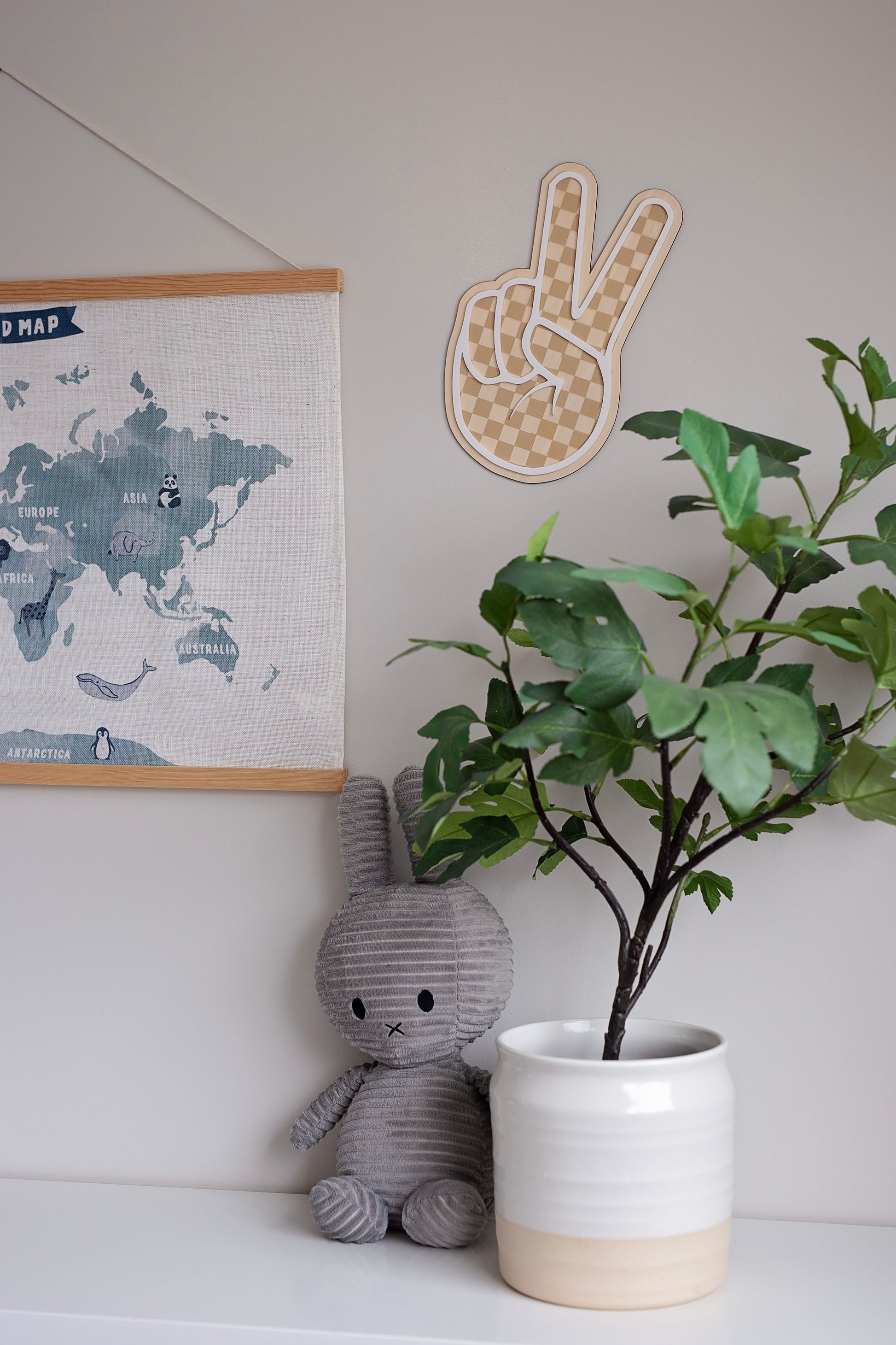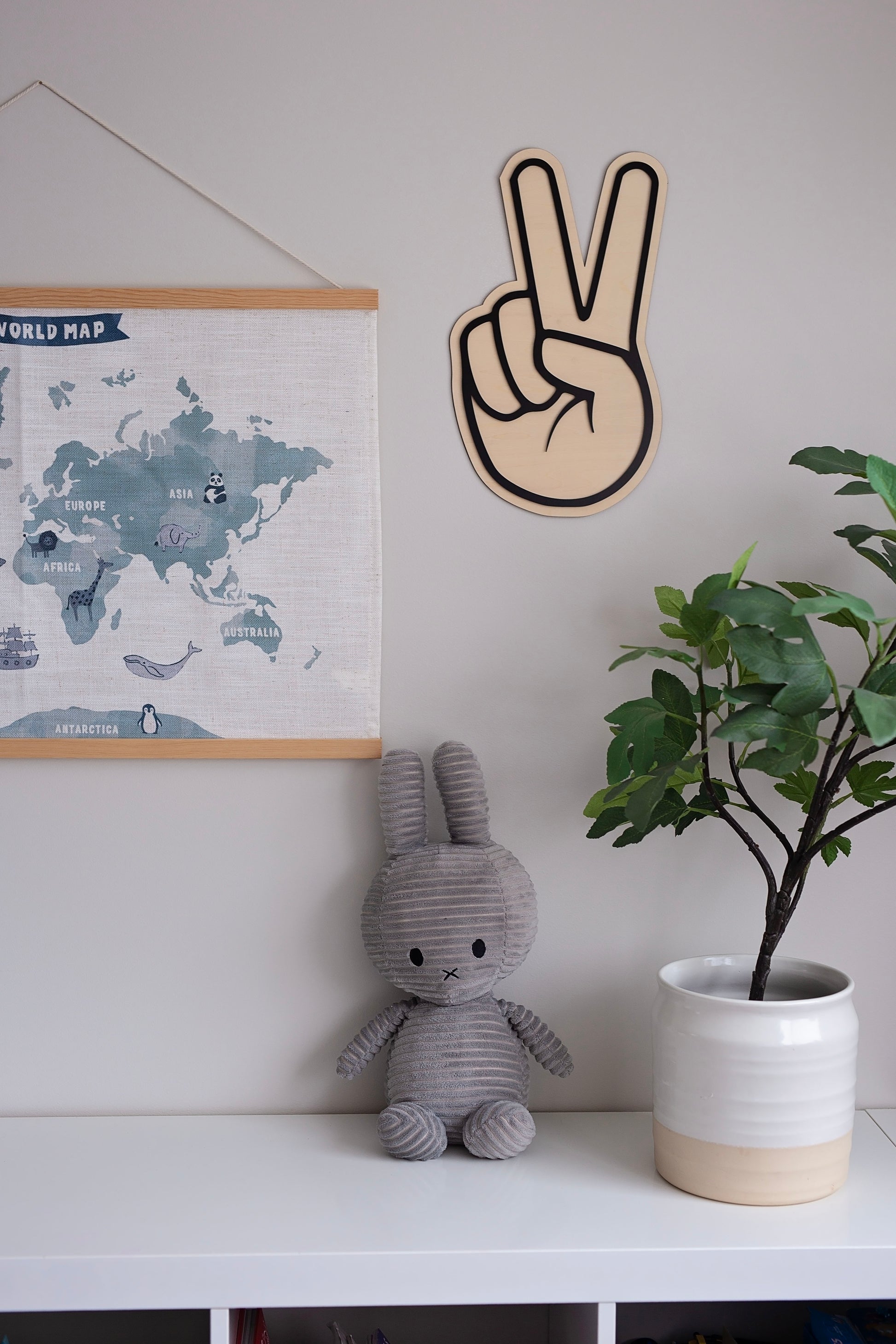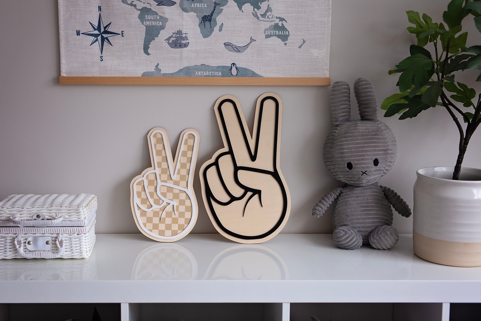 Our retro-style peace sign is expertly laser cut from 3mm thick plywood and features a top layer of 3mm thick acrylic.